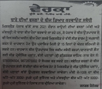| Demand for applications for subsidy in straw management related machines | Agricultural and farmer welfare department and Mission Tandrust, Punjab | 5 Aug 2020 10:58:47 AM | - | |