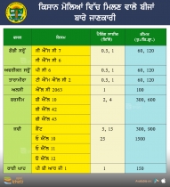 | ਕਿਸਾਨ ਮੇਲਿਆਂ ਵਿੱਚ ਮਿਲਣ ਵਾਲੇ ਬੀਜਾਂ ਦੀ ਕਿਸਮ, ਪੈਕਿੰਗ ਅਤੇ ਕੀਮਤ | ਪੰਜਾਬ ਐਗਰੀਕਲਚਰਲ ਯੂਨੀਵਰਸਿਟੀ, ਲੁਧਿਆਣਾ | 29 Aug 2019 12:43:51 PM | - | |
